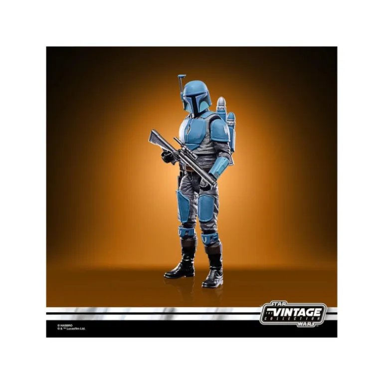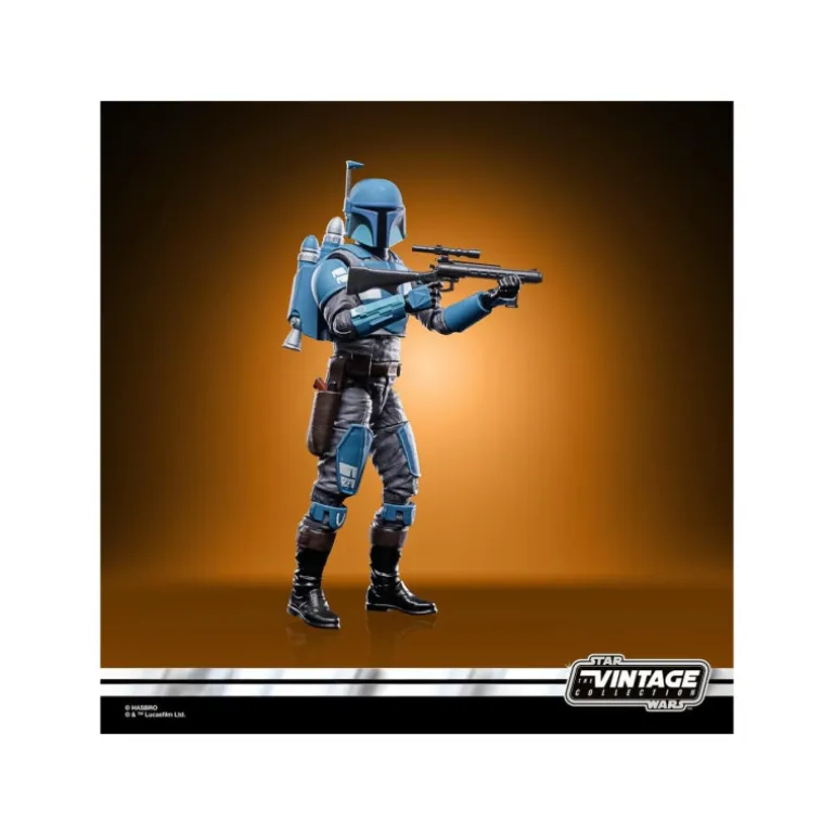 Aquí te traemos una figura realmente especial de Hasbro dentro de su serie vintage, nada menos que la de un mandaloriano de los Death Watch o Guardia de la Muerte, tal y como los vimos en The Mandalorian, la fantástica serie creada a partir del universo Star Wars.
