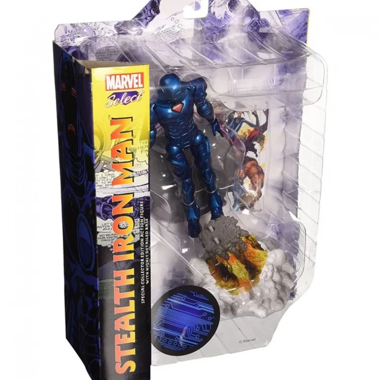 Descubre la nueva versión de Iron Man en esta impactante figura de la colección Marvel Select. Con un tamaño de 18 cm, esta figura de PVC reproduce con detalle al famoso superhéroe tal y como aparece en la tercera entrega de la película. Su acabado en tonos metálicos azulados y su base simulando un despegue con llamas, la convierten en un artículo que no puede faltar en la colección de ningún fan de Marvel.