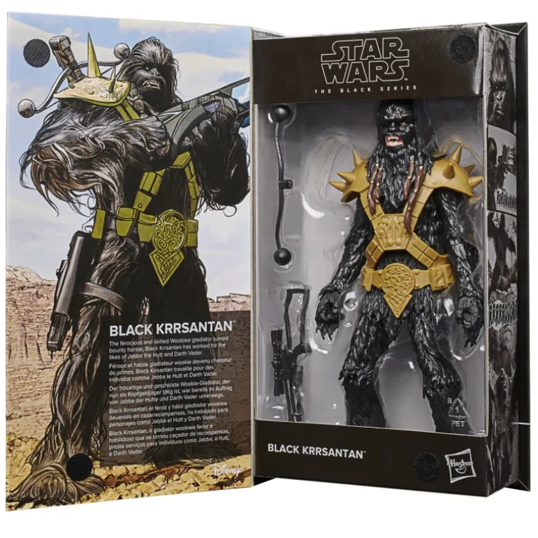 La figura de Star Wars del wookie Krrsantan El Negro de la Black Series es una pieza de colección de alta calidad, elaborada con materiales resistentes y duraderos que garantizan su conservación en óptimas condiciones por mucho tiempo. El detalle meticuloso en cada uno de sus elementos, desde su diseño hasta su impresión, hacen de esta figura una réplica fiel de su personaje en la galaxia de Star Wars.