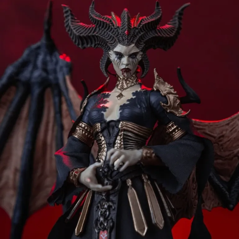 Descubre la figura articulada de Lilith de la línea «Elite Edition» de Diablo IV, un producto oficial de McFarlane Toys. Esta impresionante figura mide aproximadamente 22 cm y está diseñada con un nivel de detalle excepcional. Lilith, con su imponente presencia, lleva un atuendo oscuro con detalles dorados y una capa que realza su misticismo. Sus impresionantes alas, cuidadosamente esculpidas con texturas realistas, y su postura dinámica la hacen destacar en cualquier colección.