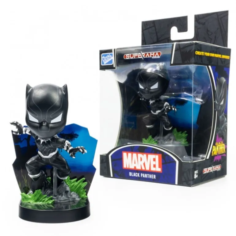 Descubre la figura mini diorama de Black Panther de la serie «Superama» de The Loyal Subjects. Esta asombrosa pieza de coleccionista capta de manera perfecta al icónico superhéroe en una pose dinámica y enérgica, ideal para los fanáticos del universo Marvel.