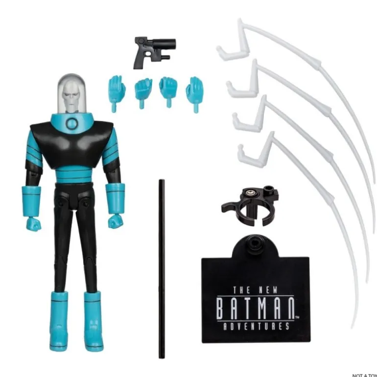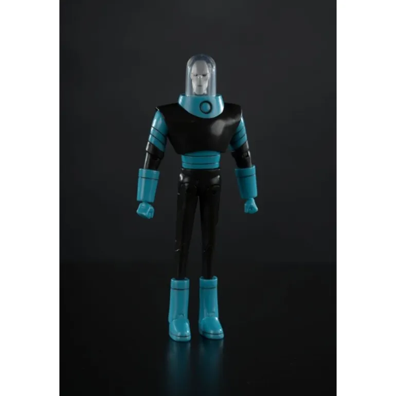 Descubre la impresionante Figura de Mr. Freeze de The New Batman Adventures, una pieza de colección que todo amante del universo DC debe tener. Esta figura articulada de 15 cm refleja el diseño clásico del personaje con un acabado en colores negro y azul brillante. Mr. Freeze lleva su característico traje con un casco transparente, acentuando su apariencia enigmática.