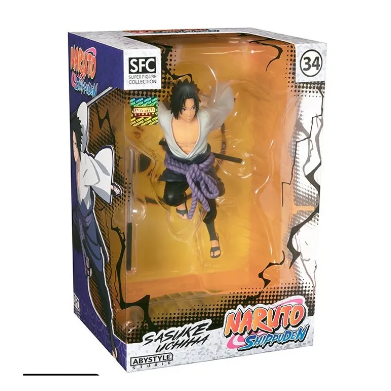 Una figura de Sasuke, de Naruto, que realmente estábamos esperando. Hacía tiempo que no nos llegaba una figura tan bien realizada. Mide aproximadamente 17 cm y está diseñada y fabricada con muchísimo arte y bajo licencia por el prestigioso fabricante francés Abysse, dentro de su línea Abystyle SFC (Super Figure Collection)
