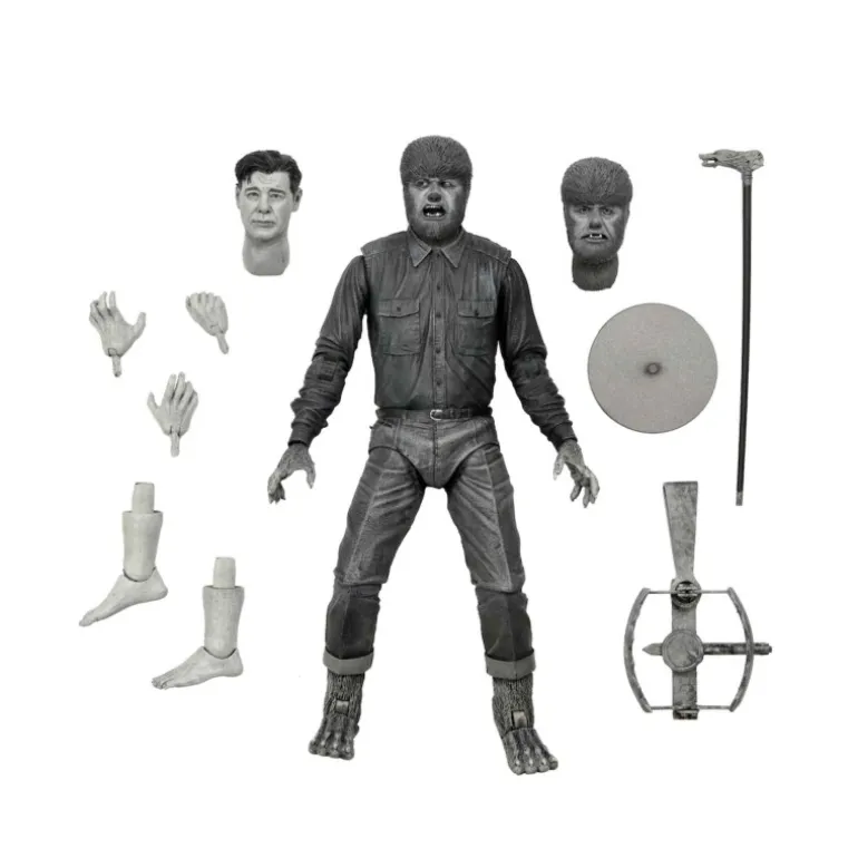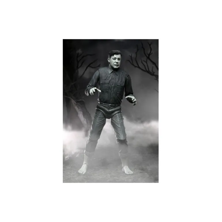 Con una altura de 18 cm, la figura incluye la imagen autorizada de Lon Chaney Jr., además de accesorios como un bastón de lobo, una trampa para animales y un soporte. Exhibida en auténticos tonos en blanco y negro que evocan el estilo original de la película. Fabricada por NECA y con licencia oficial, es un artículo imprescindible para cualquier coleccionista o fanático del cine clásico de terror. Ideal para un regalo único o un indulgente capricho personal.