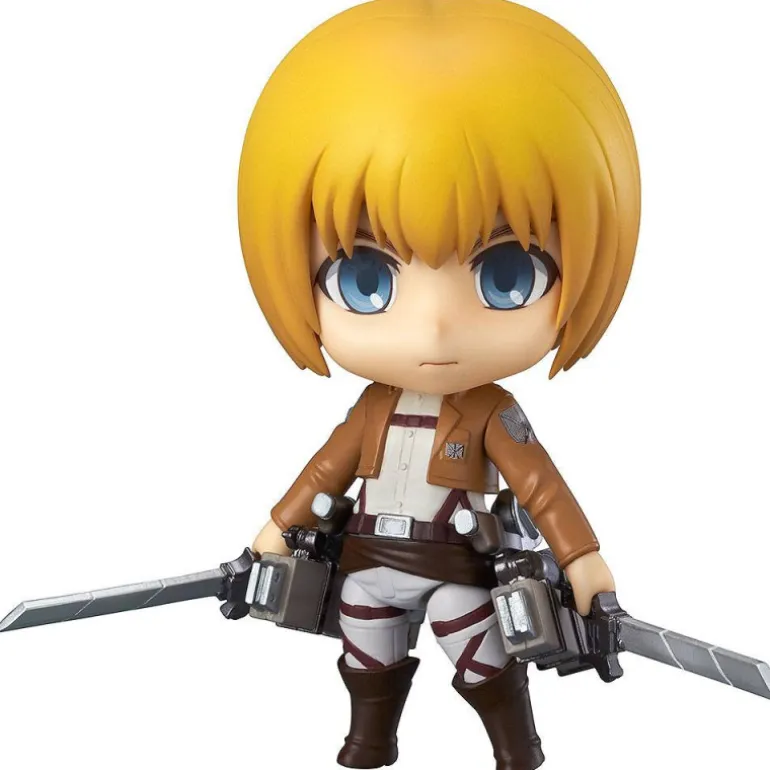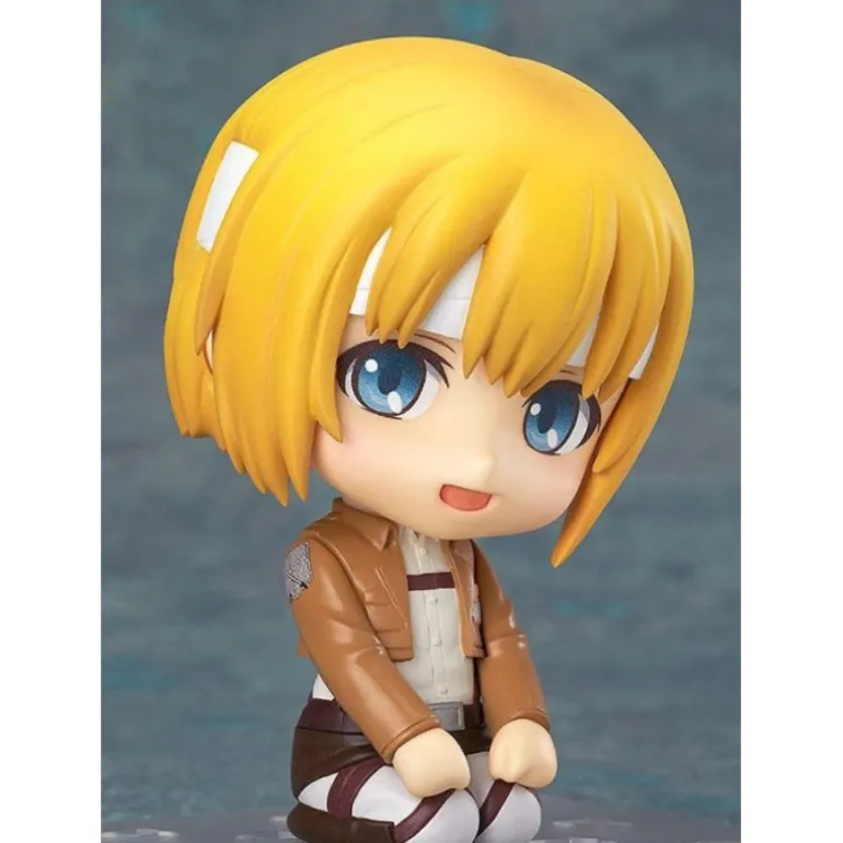 Es una figura articulada y pintada, fabricada por Good Smile Company dentro de su serie Nendoroid, una fantástica serie de figuras de unos 10 cm. en ABS y PVC con una gran calidad en cuanto a detalles y acabados, y varios accesorios entre los que se incluyen su equipo tridimensional con efectos y sin ellos, varias caras y otro torso; así como un soporte transparente y articulado para que puedas colocar a Armin en sus poses más icónicas.