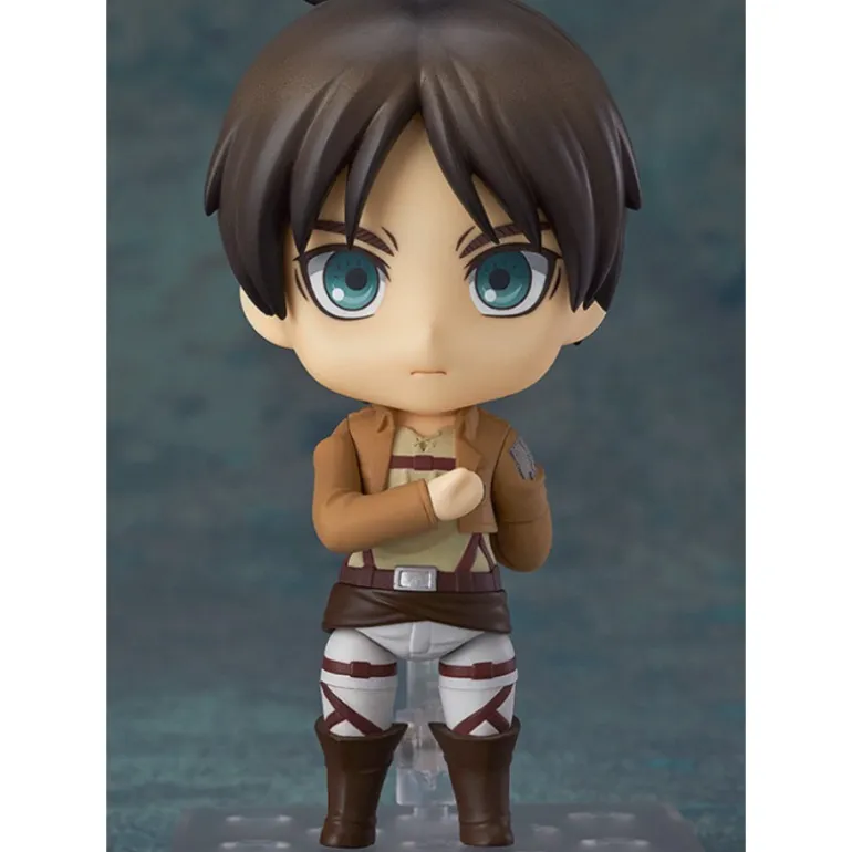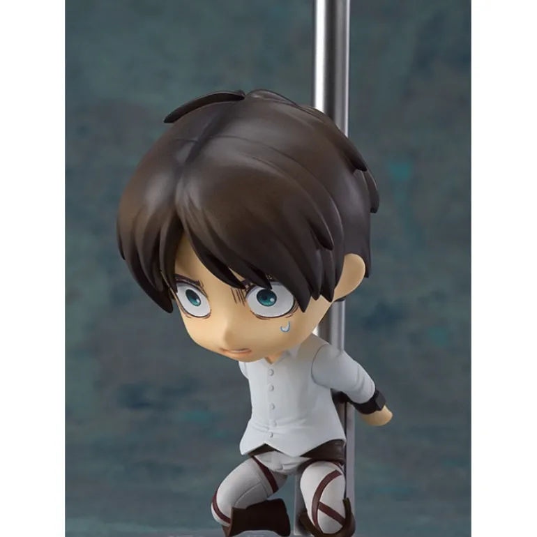 Es una figura articulada y pintada, fabricada por Good Smile Company dentro de su serie Nendoroid, una fantástica serie de figuras de unos 10 cm. en ABS y PVC con una gran calidad en cuanto a detalles y acabados, y varios accesorios entre los que se incluyen su equipo tridimensional con efectos y sin ellos, varias caras y otro torso; así como un soporte transparente y articulado para que puedas colocar a Eren en sus poses más icónicas.