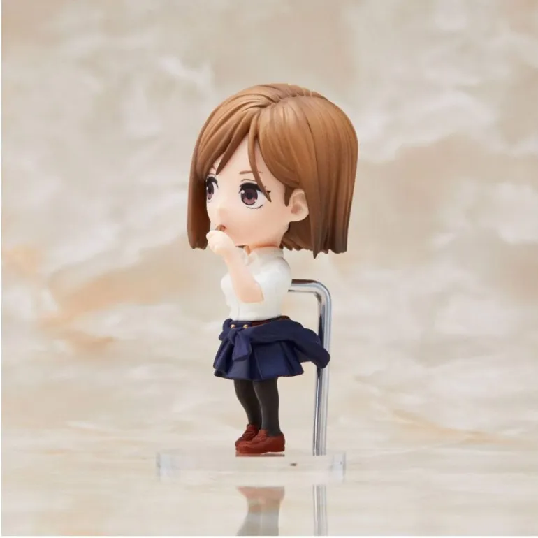 Son unas figuras de tan solo 7 cm, con ese aspecto tan adorable y divertido típico del estilo chibi japonés, y todos los rasgos característicos del personaje. En este caso, tenemos una figurita de Nobara Kugisaki, con su característica expresión, la pose, el traje…