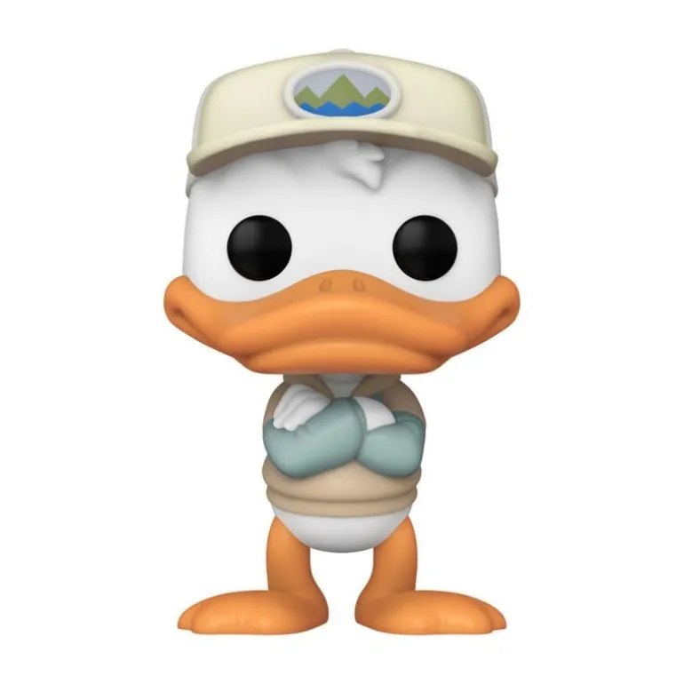 El diseño muestra a Donald con su característico pico anaranjado brillante y su gorra distintiva, resaltando los elementos icónicos que lo hacen reconocible al instante. Elaborada en resistente vinilo, esta figura combina durabilidad y estilo.