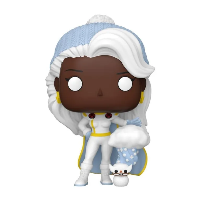 Descubre la impresionante figura de vinilo POP! Vinyl HoliDivas Storm de Marvel. Esta figura destaca por su diseño detallado y colorido. Storm lleva un atuendo blanco invernal con detalles amarillos y una capa a juego. Su cabello blanco fluye debajo de un gorro azul claro que complementa su conjunto. Con una nube de nieve en la mano, esta figura captura perfectamente la esencia del personaje de X-Men pero preparada para las Navidades y el frío invierno.