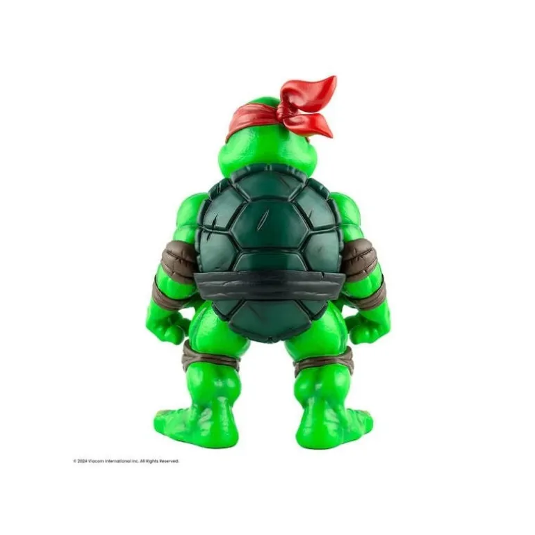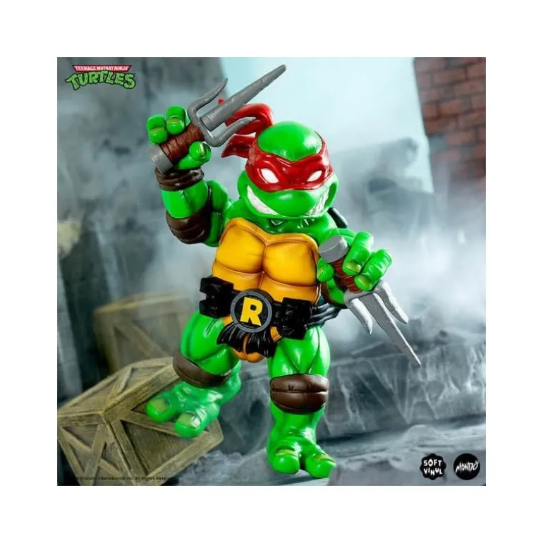 Descubre la impresionante figura de Raphael de las Tortugas Ninja, hecha de suave vinilo, con un tamaño aproximado de 20 cm. Este modelo captura perfectamente el carácter fuerte y audaz de Raphael, destacando por su máscara roja y su icónico cinturón con la letra ‘R’.