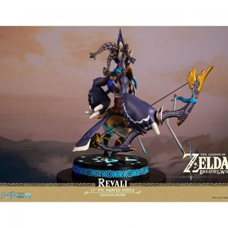 Descubre la impresionante figura de Revali de The Legend of Zelda: Breath of the Wild presentada por First 4 Figures. Esta estatua de PVC, parte de la serie «Gama Champions of Hyrule», refleja meticulosamente el arte oficial del juego. Revali está en una pose estoica, empuñando el Gran Arco del Águila con su cuerda elástica, resaltando su poder y elegancia como uno de los cuatro campeones de Hyrule.