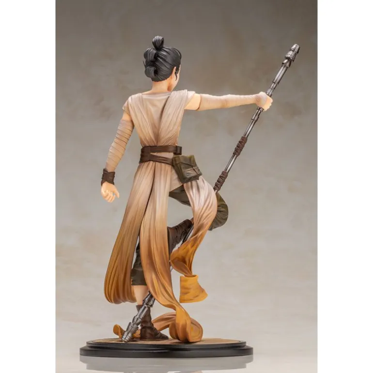 El reconocido fabricante japonés Kotobukiya, dentro de su serie ARTFX Artist, nos trae esta espectacular figura de Rey, tal y como la conocimos en el Episodio VII: El Despertar de la Fuerza. Está fabricada en PVC con materiales de alta calidad y mide 27 cm.
