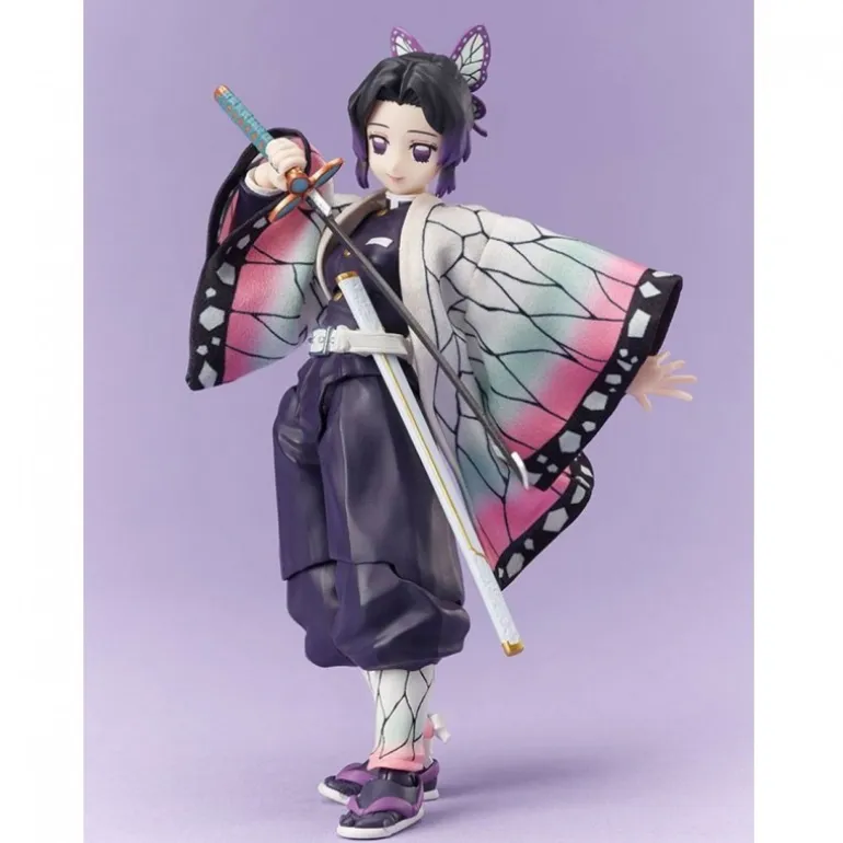 La figura de Shinobu Kocho del anime Demon Slayer: Kimetsu no Yaiba es una pieza coleccionable fabricada en PVC de alta calidad. Con un tamaño de aproximadamente 14 cm, esta estatua captura a la perfección la elegancia y el detalle de Shinobu, uno de los personajes más queridos del anime. Su distintivo atuendo, con un kimono que combina tonos rosas, morados y blancos, está representado con un nivel de detalle admirable, incluyendo las delicadas alas de mariposa en el cabello.