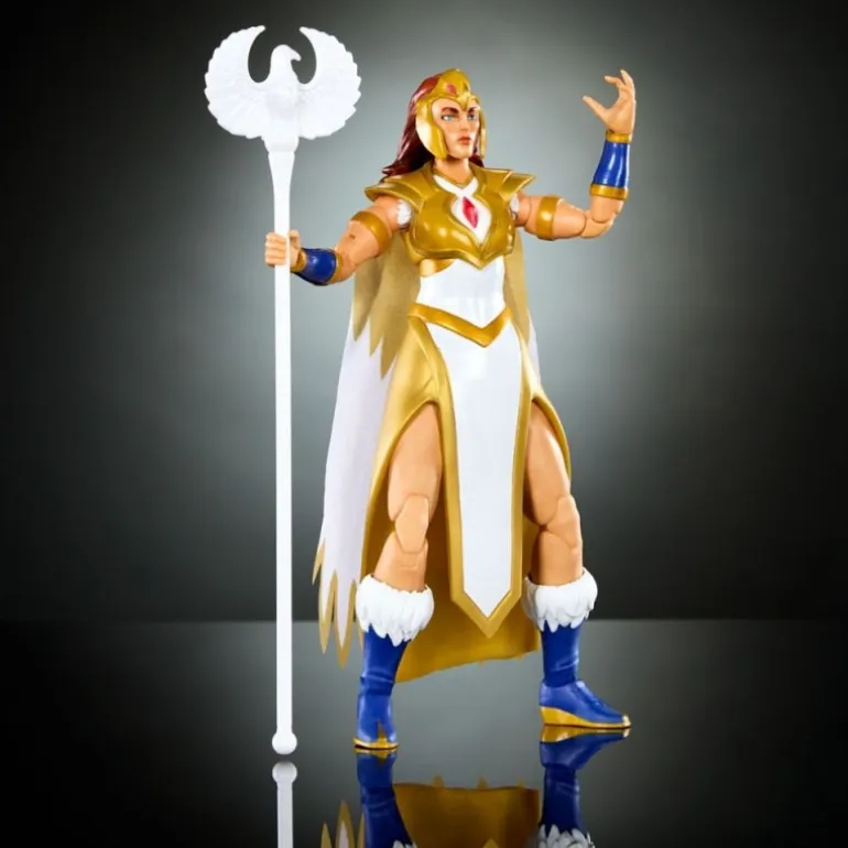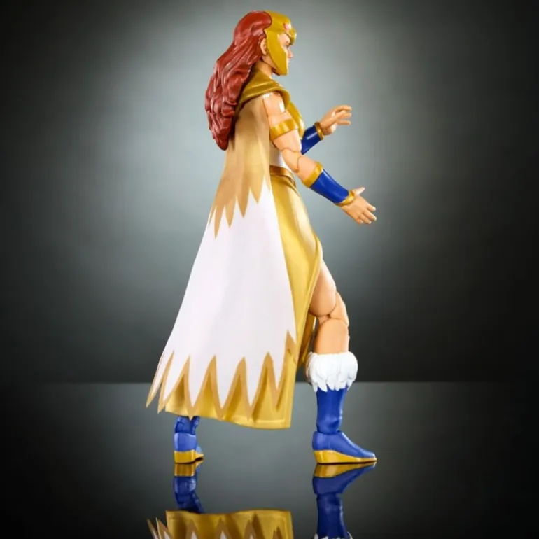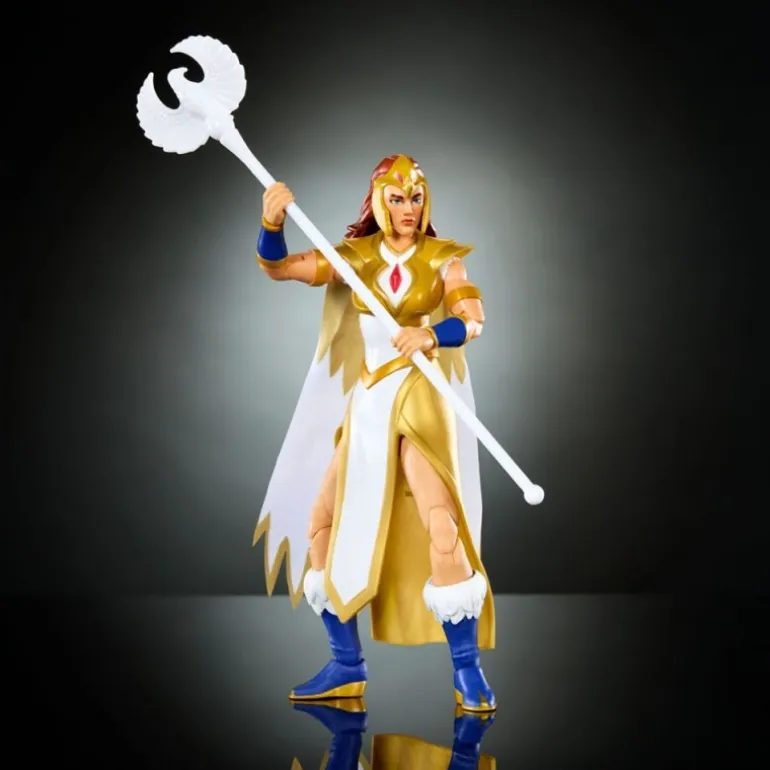 Descubre la impresionante Figura Sorceress Teela de la colección Masterverse, inspirada en Masters of the Universe: Revolution. Esta figura articulada de 18 cm de altura está meticulosamente diseñada para capturar la esencia de Teela con gran detalle. Con su elegante atuendo dorado y blanco, y una capa que añade un toque majestuoso, esta figura es un imprescindible para cualquier fan de la serie.