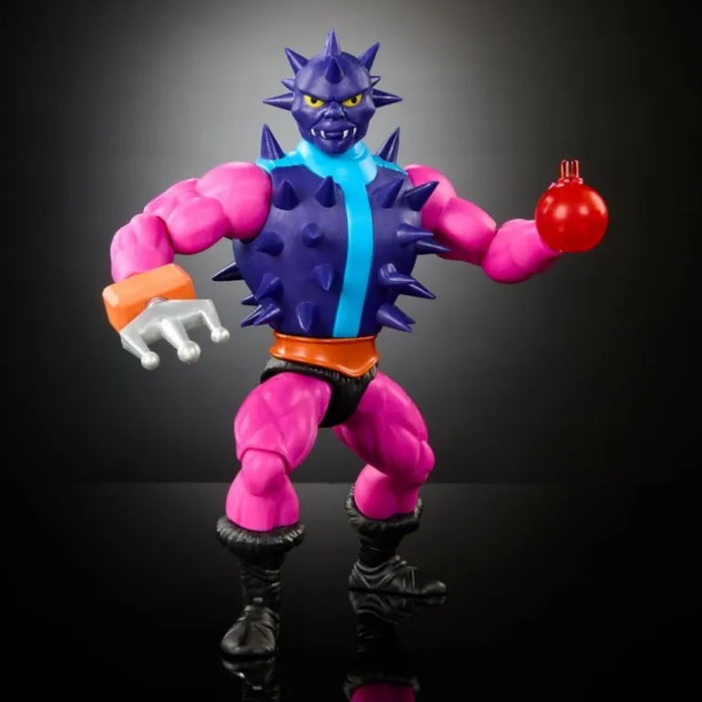 Descubre la figura articulada de Spikor de la colección Masters of the Universe Origins. Este personaje icónico cobra vida en detalle con su armadura púrpura llena de púas, resaltada por un vibrante torso azul y detalles en anaranjado. Con una altura aproximada de 14 cm, esta figura combina articulaciones movibles y accesorios intercambiables para recrear tus escenas favoritas del universo de Eternia.