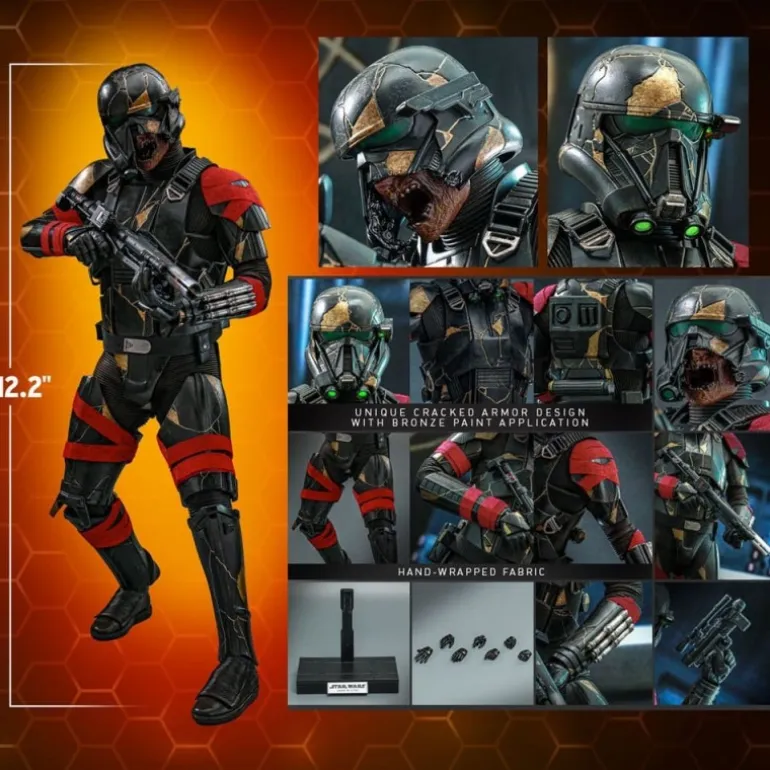 Sumérgete en el universo de Star Wars con esta impresionante figura del Death Trooper, de la serie Ahsoka. Fabricada por Hot Toys, esta figura pertenece a la línea «Television Masterpiece» y viene a escala 1/6, alcanzando un tamaño aproximado de 31 cm. Detalladamente diseñada, su armadura agrietada con aplicación de pintura en bronce y tela envuelta a mano captura a la perfección la esencia de este icónico personaje.
