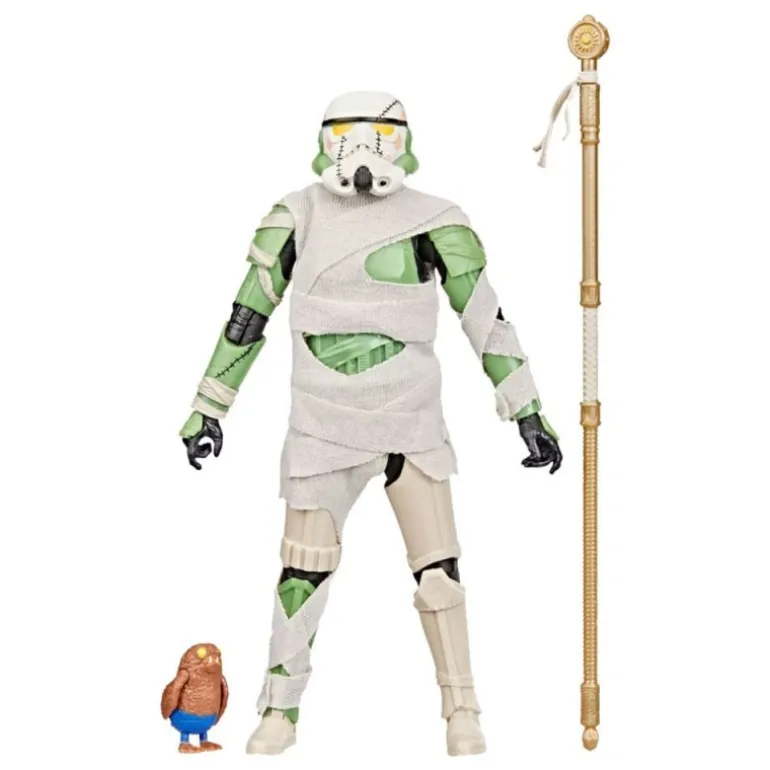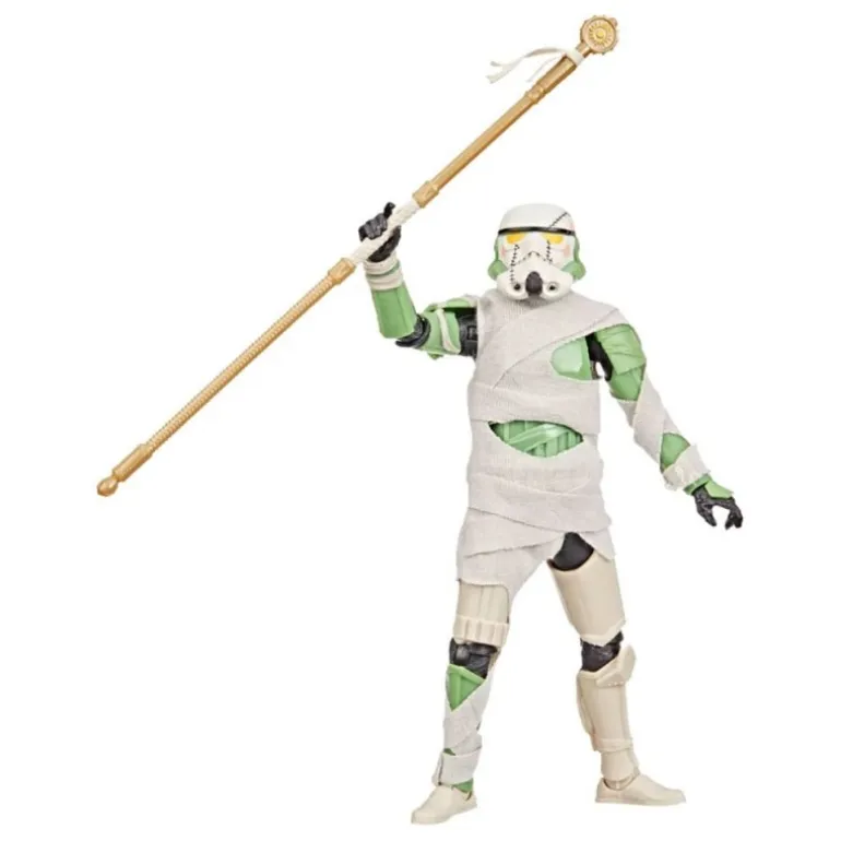 Descubre la Figura Night Trooper de la colección Star Wars Black Series en su especial edición de Halloween. Esta figura de 15 cm destaca por su diseño único, donde el clásico Stormtrooper se reinventa con un toque festivo. Su armadura presenta detalles en verde y está cubierta con vendas simulando un disfraz de momia, perfecto para los entusiastas de la temática de Halloween.