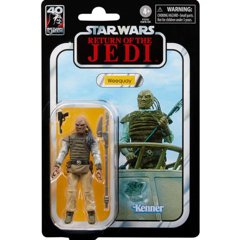 Los Weequays son una especie con una piel áspera y arrugada, generalmente de color marrón, que llevan su pelo en forma de trenzas. Celebra el legado de Star Wars, la emocionante saga espacial de una galaxia muy, muy lejana, con las figuras y vehículos premium a escala de 9,5 cm de Star Wars la colección Vintage. Las figuras de acción cuentan con diseño y detalles premium, incluyendo los embalajes, además del decorado inspirado en la ficción con calidad de artículo de colección que los fans tanto aprecian. (Los productos adicionales se venden por separado. Sujeto a disponibilidad.) Con detalles realistas y múltiples puntos de articulación inspirados en Star Wars: El Retorno del Jedi, esta figura coleccionable de Weequay a escala de 9,5 cm, de Star Wars La colección Vintage, es un gran regalo para los fans y coleccionistas de Star Wars.
