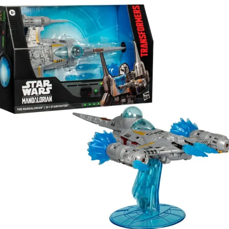Descubre la increíble Star Wars x Transformers Figura The Mandalorian / N-1 Starfighter, un tesoro para coleccionistas y fanáticos de ambas sagas. Esta figura de 19 cm de Hasbro captura el diseño icónico del Caza Estelar N-1 de The Mandalorian y lo transforma en un imponente robot. Con medidas de 18,6 x 28,5 x 8 cm y un peso de 337 gramos, es una pieza destacada para cualquier vitrina.