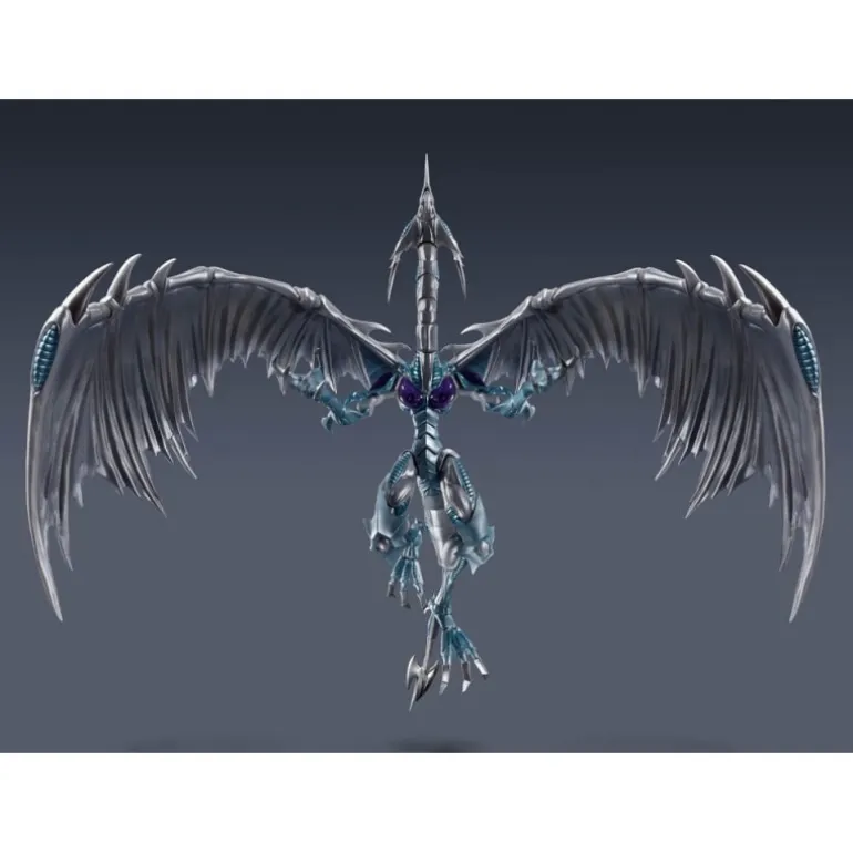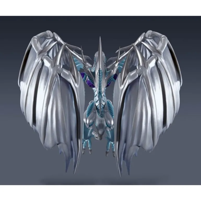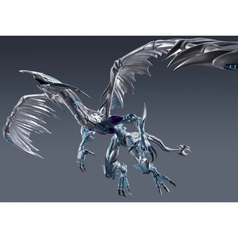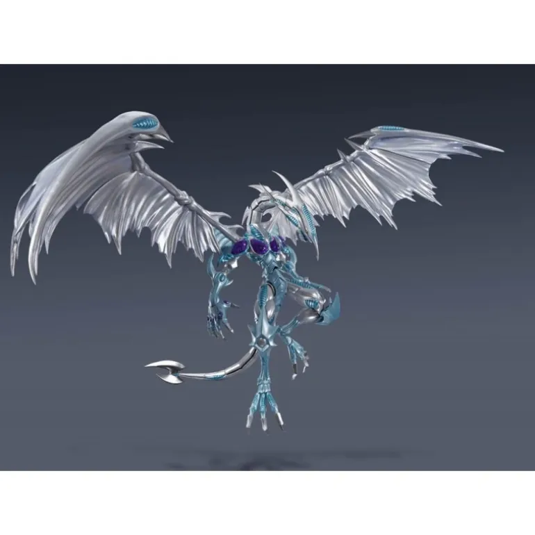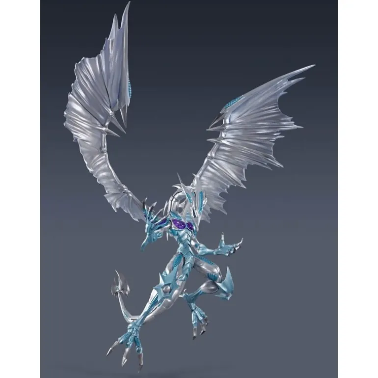 La impresionante figura articulada de Stardust Dragon de la línea S.H. MonsterArts es un imprescindible para los fans de Yu-Gi-Oh! Este dragón espectacular, fabricado por Bandai Tamashii Nations, mide aproximadamente 53 x 38 cm, destacándose por su imponente tamaño. Con sus alas extendidas y detalles metálicos plateados, captura a la perfección la magnificencia del Stardust Dragon.