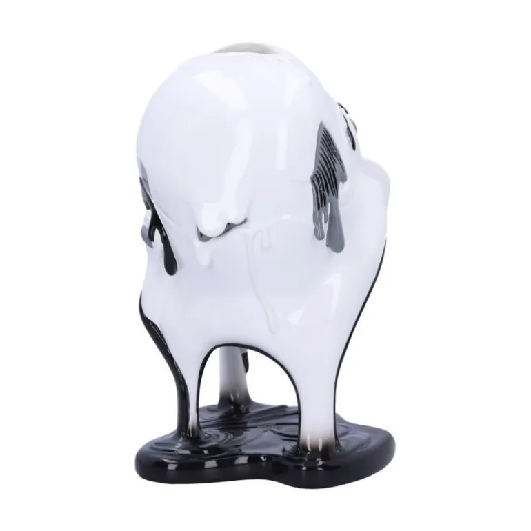 La figura, de unos 23cm, presenta una gama de colores dominada por el clásico blanco y negro de los Stormtroopers, pero con un efecto de goteo y ondulaciones que imitan el derretimiento del casco. Cada detalle está cuidadosamente esculpido, destacando los relieves y las líneas características del casco imperial, ahora transformadas en un arte fluido y dinámico.