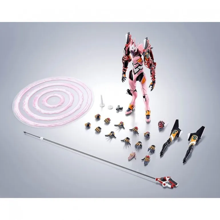 La figura articulada EVA-08 de Tamashii Nations es una joya indispensable para los coleccionistas de Evangelion. Basada en «Evangelion: 3.0+1.0 Thrice Upon a Time«, esta figura mide 17 cm y está fabricada en PVC de alta calidad. Su estructura detallada presenta colores vibrantes en tonos rosas, naranjas y negros, capturando fielmente el diseño del EVA-08.