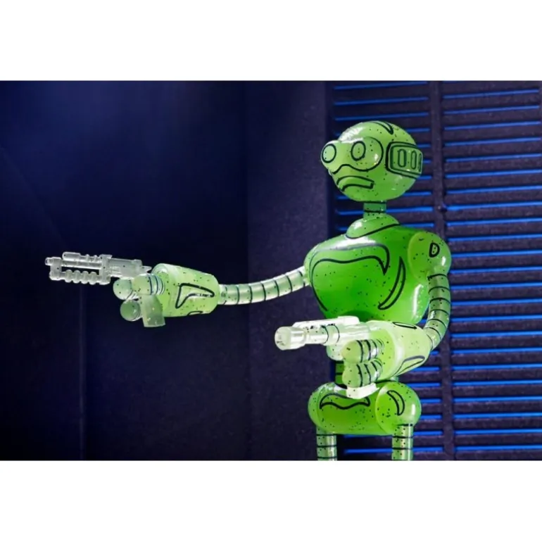 Descubre la impactante Figura Transmat Fugitoid GID de 18 cm, una pieza esencial para los seguidores de las Tortugas Ninja y los Mirage Comics. Fabricada por NECA, esta figura está diseñada con un llamativo color verde translúcido que brilla en la oscuridad, aportando un toque único a tu colección.