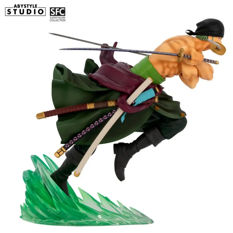 Es una figura escala 1:10 de unos 18 cm, diseñada y fabricada en PVC por la firma francesa Abystyle Studio, dentro de su serie SFC y representa a la perfección a Zoro con todas las principales características que lo definen, desde la fiereza en el rostro, su pañuelo en la cebeza a las tres espadas que empuña al mismo tiempo: Wado Ichimonji, Sandai Kitetsu y Shusui.