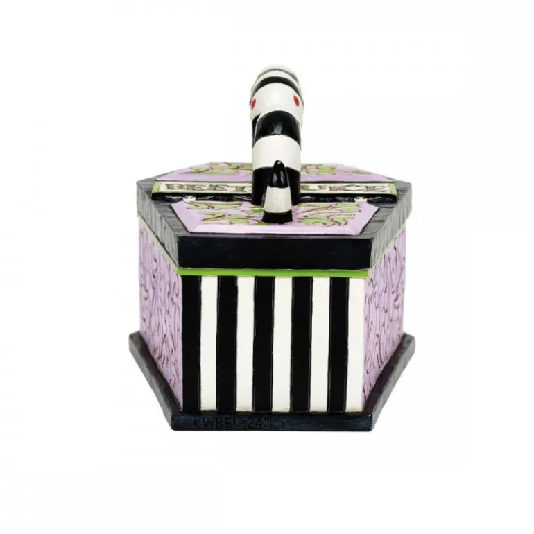 La Figura Caja Abalorios Ataúd Beetlejuice de la reconocida marca Enesco, en colaboración con el célebre artista y escultor Jim Shore, representan una fusión perfecta entre arte y una de las películas más icónicas del cine de culto. Este producto, especialmente diseñado para los adultos, no solo captura la esencia de Beetlejuice, sino que también se convierte en una pieza central en cualquier colección.