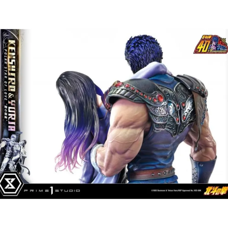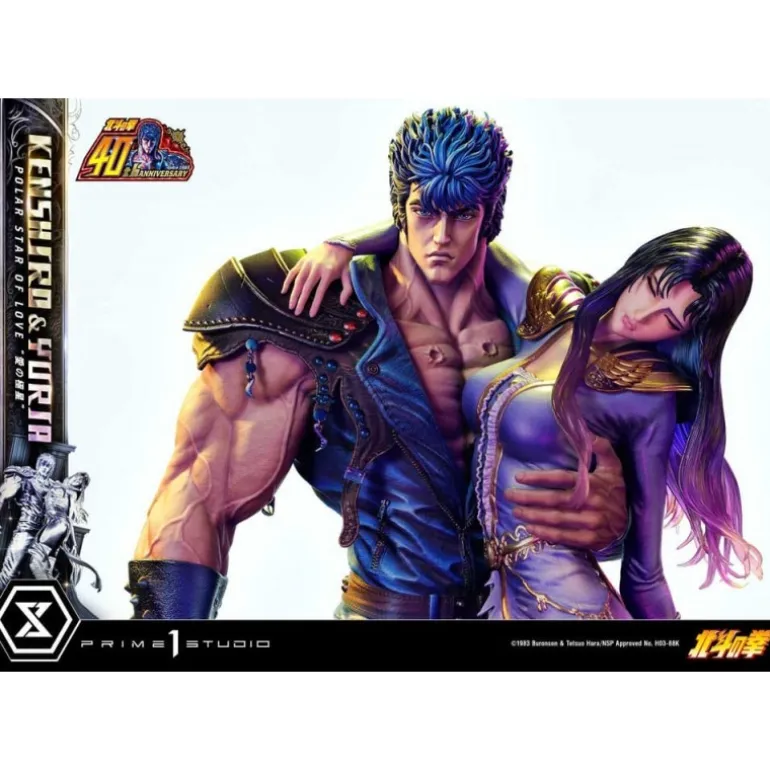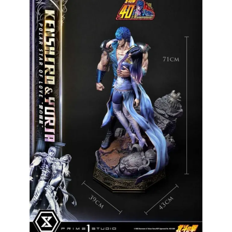 Descubre la impresionante estatua de Kenshiro y Yuria de la serie Fist of the North Star, una obra maestra de Prime 1 Studio. Esta figura captiva por su cuidadoso detalle y realismo, destacando la figura de Kenshiro con su característico atuendo azul y Yuria con su elegante vestido lila. La estatua está finamente elaborada en poliresina, pintada a mano para garantizar el máximo detalle.