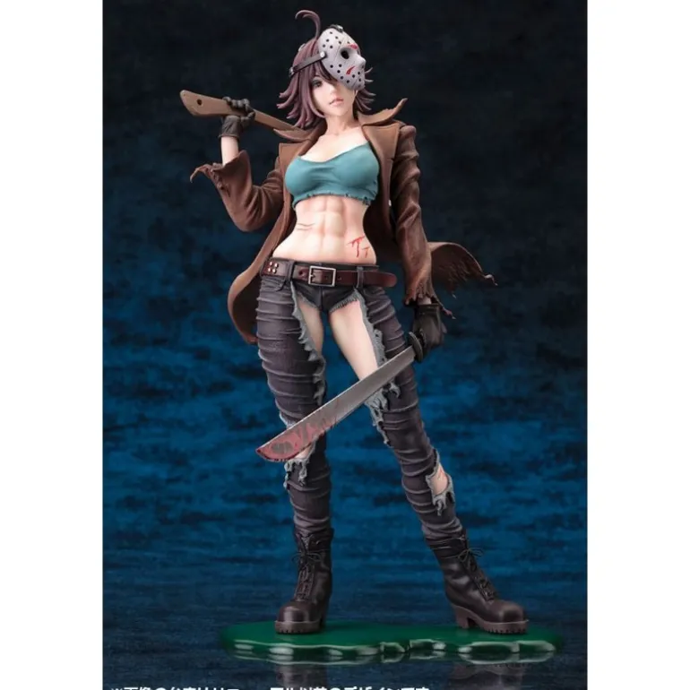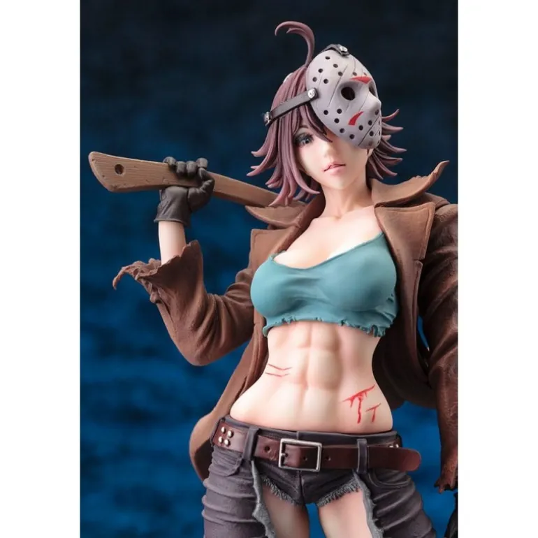 La estatua representa a Jason en una interpretación estilizada y sexualizada, ideal para adultos que aprecian el arte contemporáneo del horror. Luce un atuendo detallado con un top ajustado, pantalones desgarrados y la icónica máscara de hockey, todo con acabados exquisitos que capturan la esencia del personaje. Con licencia oficial, es el complemento perfecto para tu colección de ‘Freddy vs. Jason’.