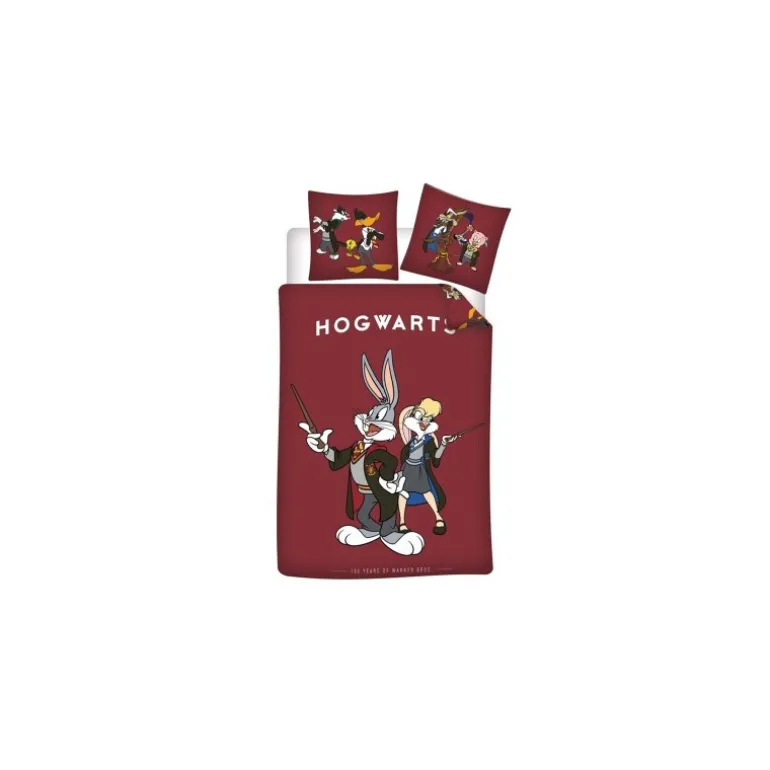 Transforma el dormitorio en un mundo mágico con esta funda nórdica de edición especial Looney Tunes x Harry Potter. Diseñada en un tono burdeos intenso, la funda presenta a los icónicos personajes de Looney Tunes vestidos como estudiantes de Hogwarts, añadiendo un toque divertido y mágico.