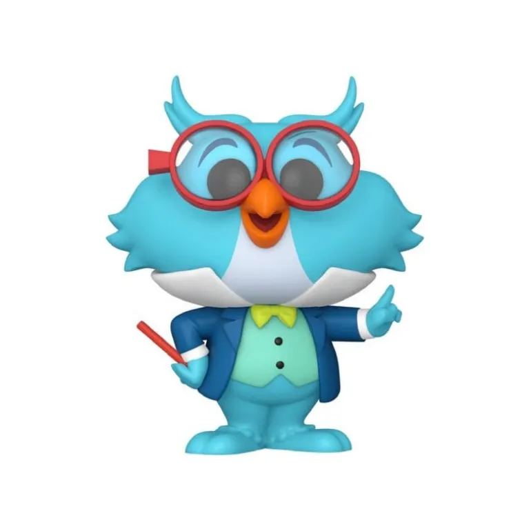 El Profesor Búho lleva una vestimenta detallada que incluye un elegante traje azul con pajarita amarilla, y sostiene un puntero en su ala, listo para impartir sus enseñanzas. Esta figura viene en su caja original, asegurando su protección y valor como objeto de colección. Un producto con licencia oficial de Disney, hecho por Funko, que garantiza autenticidad y calidad.