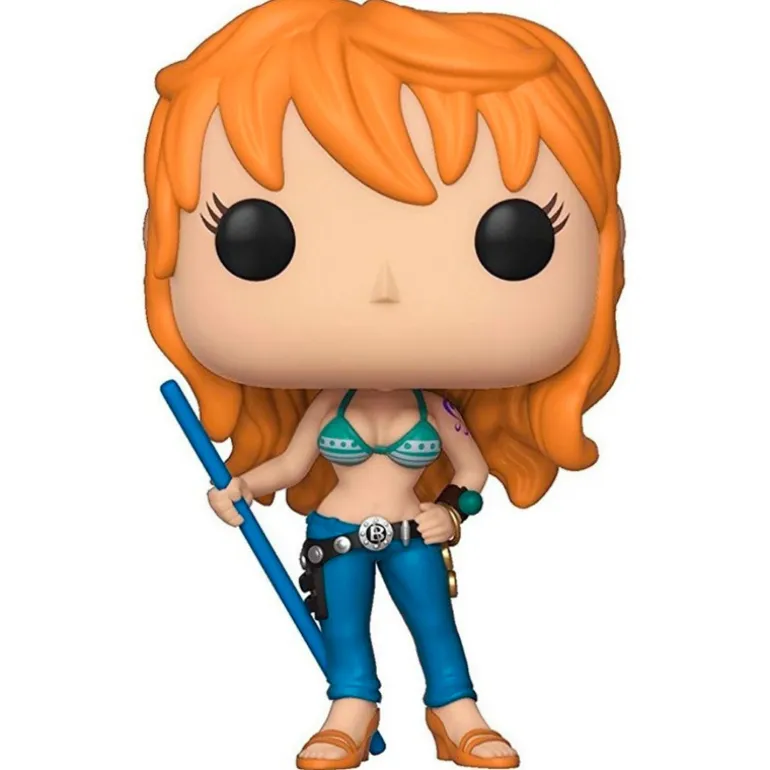 Y en esta ocasión Funko nos trae a uno de los personajes femeninos más populares de la original serie de anime One Piece, nada menos que la genial Nami, una de las integrantes del los Piratas del Sombrero de Paja, con uno de sus atuendos más habituales su arma típica y si nos fijamos bien podemos ver hasta su tatuaje en el brazo.