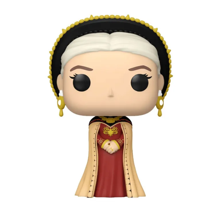 Y en esta ocasión Funko nos trae nada menos que a Rhaenyra Targaryen, tal y como aparece cuando es elegida como heredera al trono, con su ostentoso traje con diadema y pendientes super llamativos.