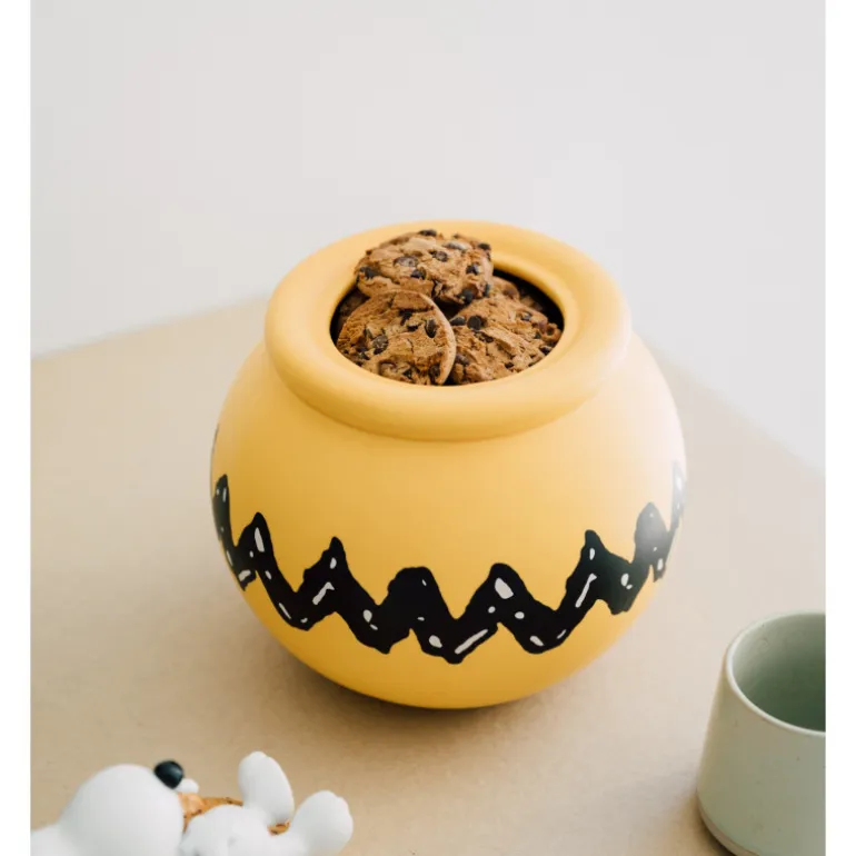 El Galletero Snoopy está elaborado en cerámica de alta calidad, lo que no solo garantiza su durabilidad, sino también la elegancia en su diseño. Con unas medidas de 17,5 x 24 cm, este galletero ofrece el espacio ideal para almacenar una variedad de galletas, asegurando que tu colección de dulces preferidos esté siempre al alcance de la mano. Su funcionalidad está complementada por un ingenioso sello de ajuste hermético que permite conservar la frescura y el crujido de las galletas por más tiempo, evitando que se ablanden y asegurando que cada bocado sea una experiencia deliciosa.