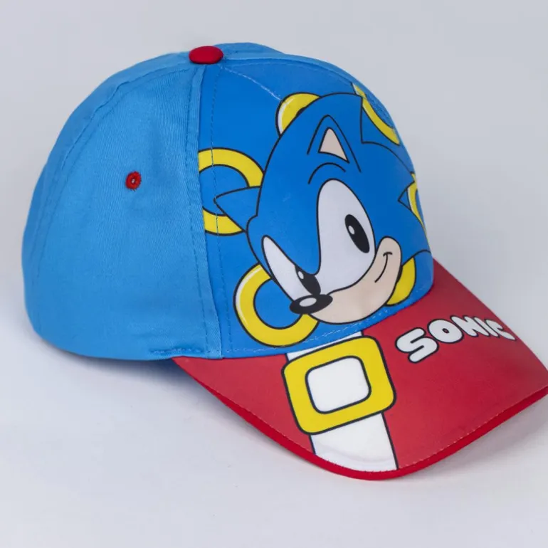 Descubre la Gorra Sonic, un complemento esencial para los jóvenes seguidores del famoso erizo azul. Confeccionada con un llamativo diseño en tonos azul y rojo, esta gorra presenta a Sonic en su característica pose dinámica, acompañado de elementos icónicos como los anillos dorados.