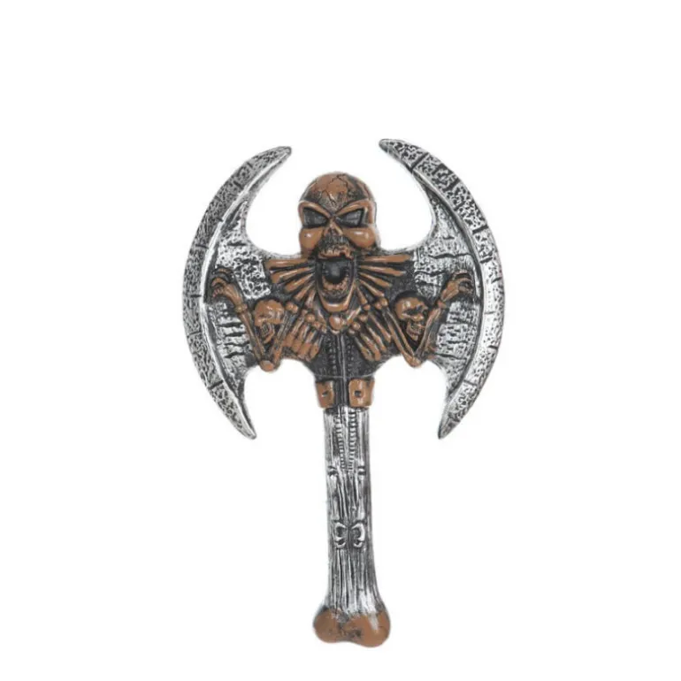 Hacha de Doble Filo de Esqueleto. Perfecto complemento para nuestros disfraces de vikingo, bárbaro y esqueleto. Ideal para Halloween y fiestas del terror.