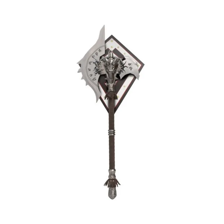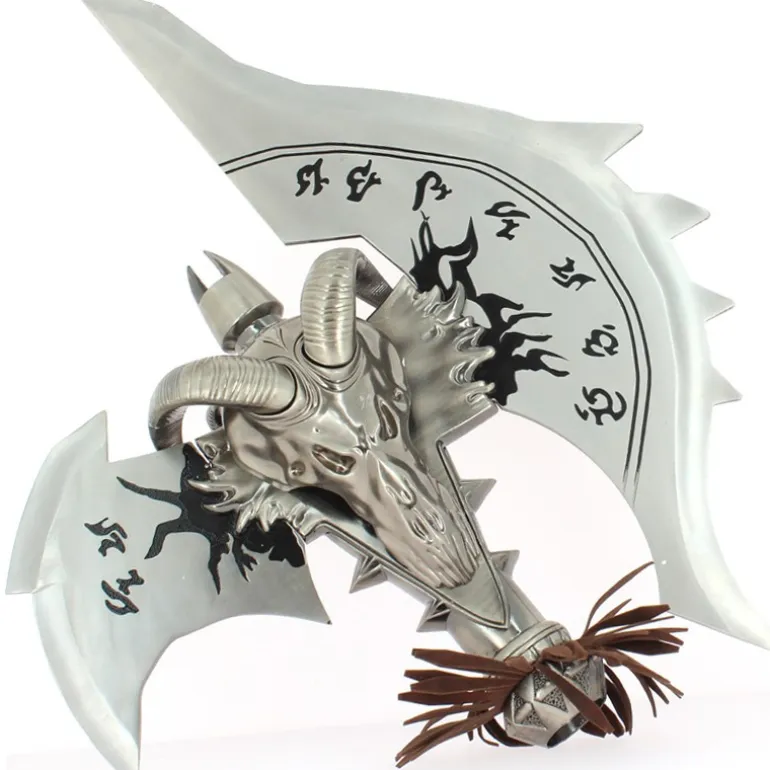 Es una réplica del hacha que lleva Shadowmourne en World of Warcraft que mide un total de 110×40 cm y con la hoja de acero negro y mango de acero con recubrimiento de ante marrón, con soporte.