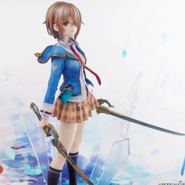 Descubre la impresionante estatua de Ruka Kayamori del videojuego ‘Heaven Burns Red’. Esta figura de PVC en escala 1/7 captura a la perfección los detalles del personaje, destacando su atuendo escolar compuesto por una chaqueta azul con detalles dorados y una falda a cuadros marrón. La estatua mide 24 cm de altura y se presenta sobre una base que simula agua con efectos transparentes, lo que añade un toque dinámico y visualmente atractivo.