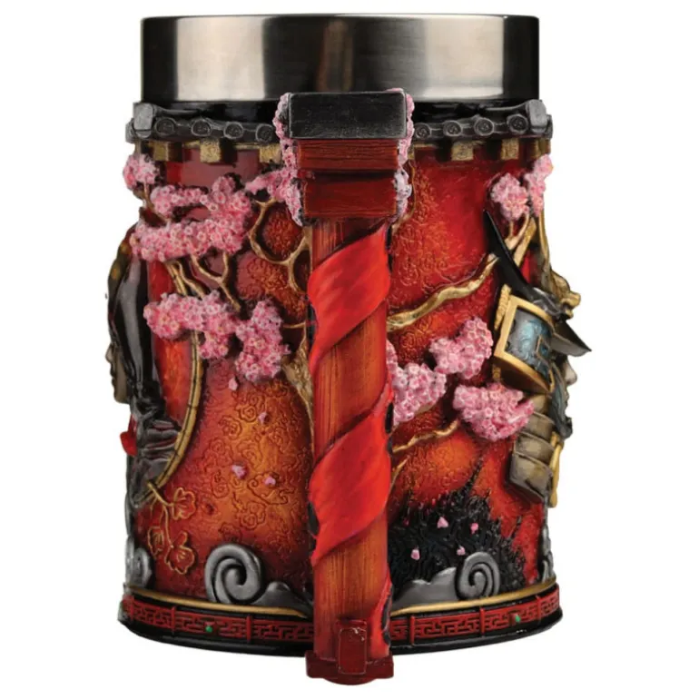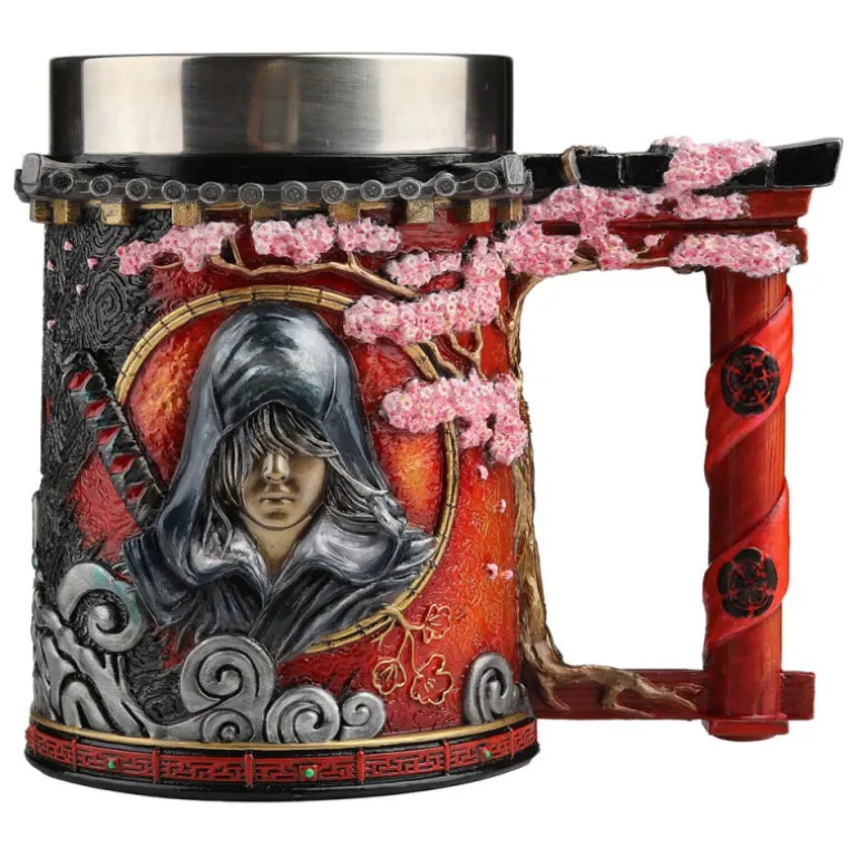 Fabricada por Nemesis Now, bajo licencia oficial, esta jarra está confeccionada en poliresina, garantizando durabilidad y un acabado de primera. El exterior presenta un diseño fascinante con elementos orientales: Naoe, encapuchada rodeada de flores de cerezo en relieve, colores rojos vibrantes y detalles dorados para la armadura del samurái Yasuke.