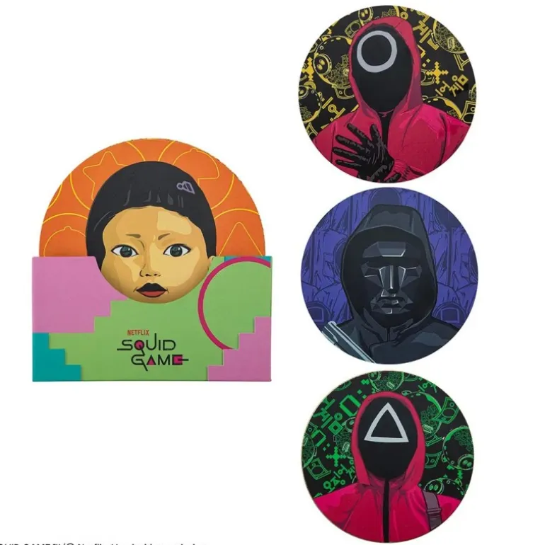 Regala o adquiere estos posavasos para sumergirte en el mundo de Squid Game mientras disfrutas de tus bebidas favoritas. Son el obsequio ideal para cualquier coleccionista o amante de la serie, ofreciendo un toque de emoción a cada sorbo.