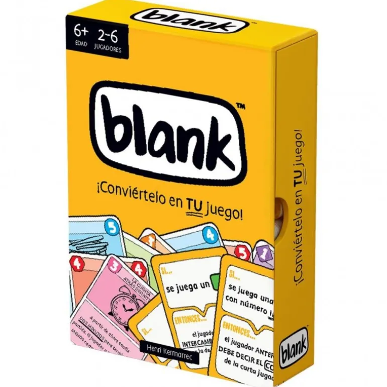 Con una duración de 45 a 60 minutos y diseñado para 2 a 6 jugadores, Blank es perfecto para una diversión familiar o entre amigos. Cada victoria te permite dejar tu huella en el juego creando nuevas reglas o personalizando cartas.