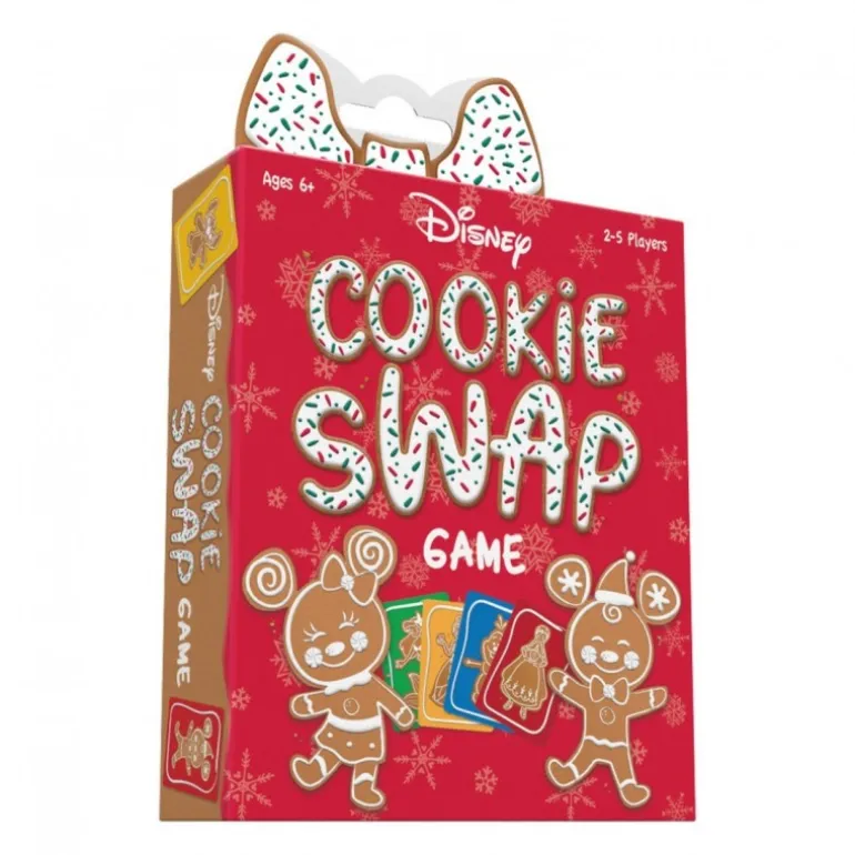 ¡Descubre el mundo mágico de Cookie Swap, el juego de mesa perfecto para toda la familia! Este encantador juego de cartas, con licencia oficial de Disney y Pixar, te invita a reunir a tus personajes favoritos en una divertida competencia de intercambio de galletas. Con un diseño vibrante, el juego viene en una caja roja decorada con motivos navideños y personajes de galleta de jengibre en colores festivos.