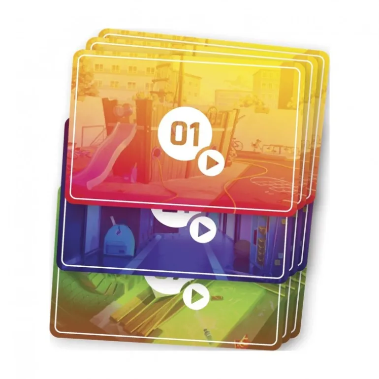 El juego de mesa Flashback Zombie Kidz es una emocionante aventura cooperativa de investigación visual ideal para los jóvenes exploradores. La caja muestra una ilustración vibrante con un niño usando un visor futurista, sumergiéndolos en un mundo donde los zombis han invadido la escuela. Este juego está diseñado para niños a partir de 7 años, fomentando el trabajo en equipo y la resolución de problemas a medida que los jugadores viajan al pasado para salvar el mundo.