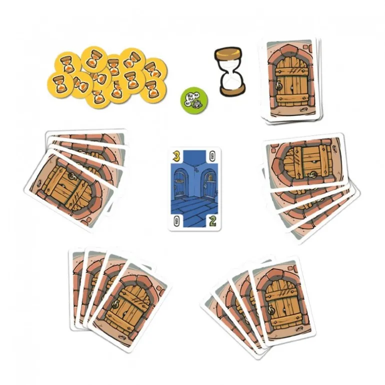 El juego incluye una variedad de componentes diseñados para mantenerte alerta y entretenido: 63 cartas de mazmorra, desde salas vacías hasta aquellas pobladas por aterradoras criaturas. También encontrarás 12 fichas de tiempo y un reloj de arena de 6 minutos para mantener la presión de la misión, así como fichas de grimorio y de hablar/silencio que añaden un giro estratégico al juego.