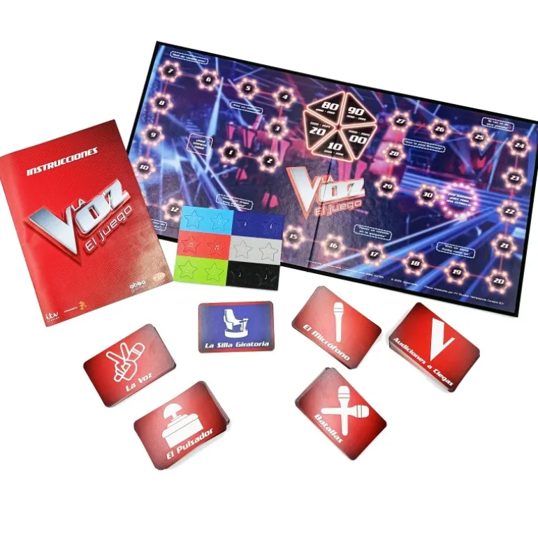 El paquete incluye múltiples tarjetas de juego con diferentes categorías, fichas de puntuación en forma de estrellas y un manual de instrucciones fácil de seguir. Apto para jugar en familia o con amigos, este juego oficial de La Voz promete horas de diversión, risas y, por supuesto, ¡mucha música!