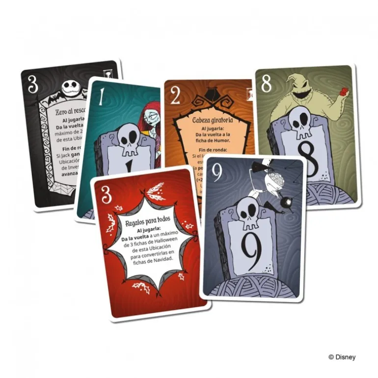 Descubre la emocionante competición entre Halloween y Navidad con el Juego de Mesa Pesadilla Antes de Navidad. Este juego de cartas ágil y estratégico te invita a encarnar a tus personajes favoritos del icónico universo. Con un diseño atractivo y basado en la popular película, cada jugador recibe un mazo de cartas exclusivo que refleja el carácter único de su personaje.