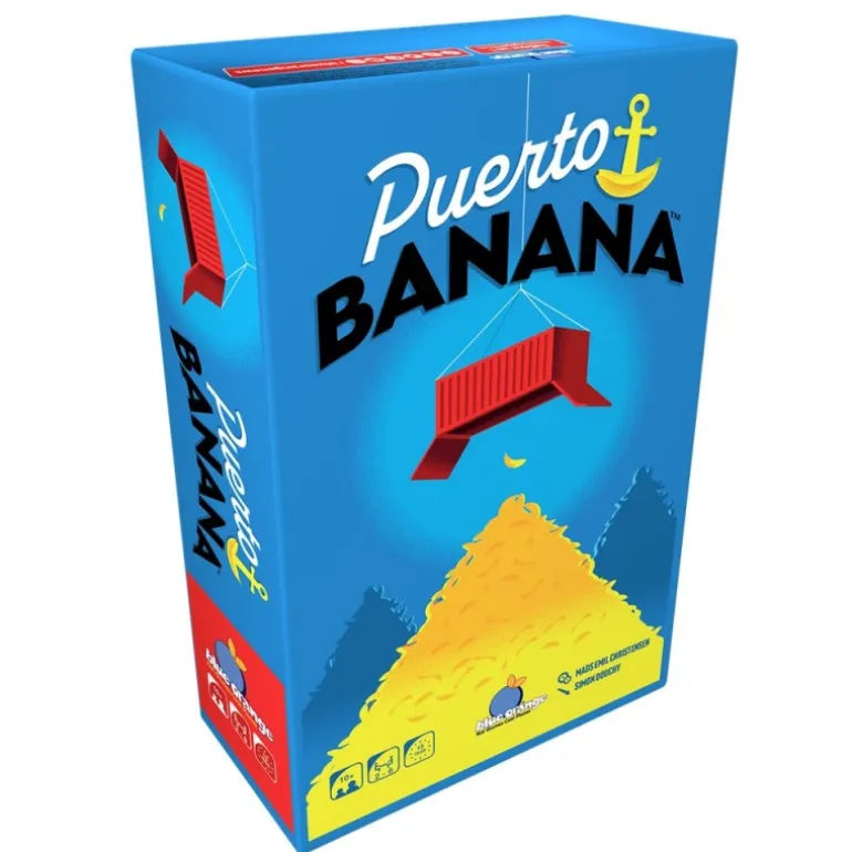 ¡Bienvenido a Puerto Banana, el juego de mesa más esperado del año! Prepárate para desafiar a tus amigos en una emocionante competición por convertirte en el maestro de los plátanos. Con un diseño vibrante, la caja muestra un contenedor rojo sobre una colina de plátanos amarillos, representando un puerto lleno de aventuras.