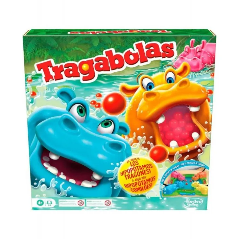 El juego de mesa Tragabolas de Hasbro es una experiencia divertida y llena de acción, perfecta para los más pequeños de la casa. Diseñado para niños a partir de 4 años, permite de 2 a 4 jugadores. Cada participante elige uno de los cuatro coloridos hipopótamos y compite por tragar la mayor cantidad de canicas en el estanque central. Las canicas se guardan con seguridad en un práctico contenedor, asegurando que no se pierdan durante el juego.